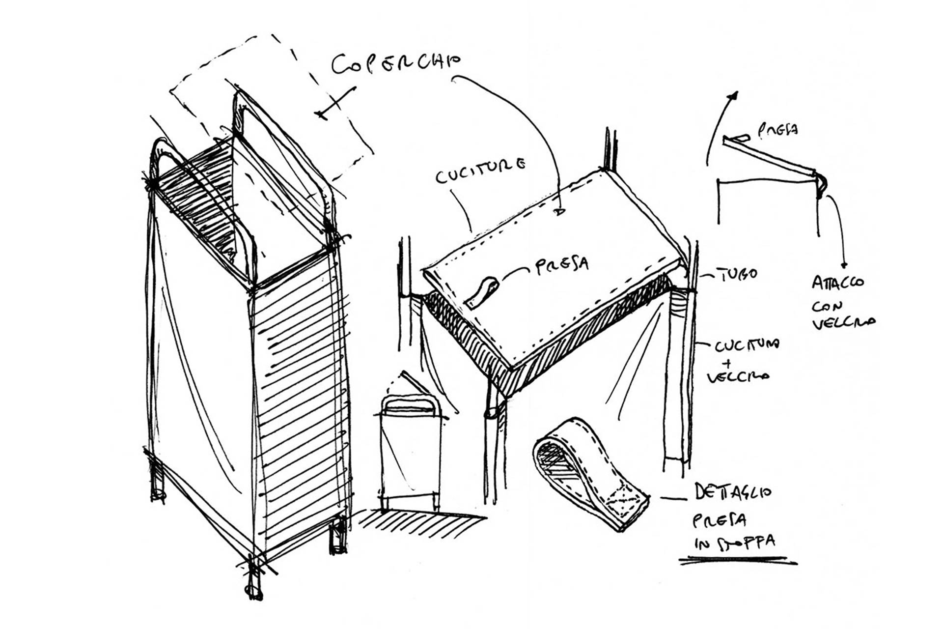 The laundry can be throwen in the bag’s top, which is openable/closable by simply pulling the sewed handle.