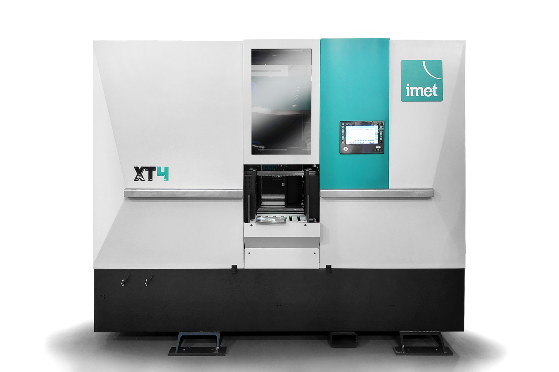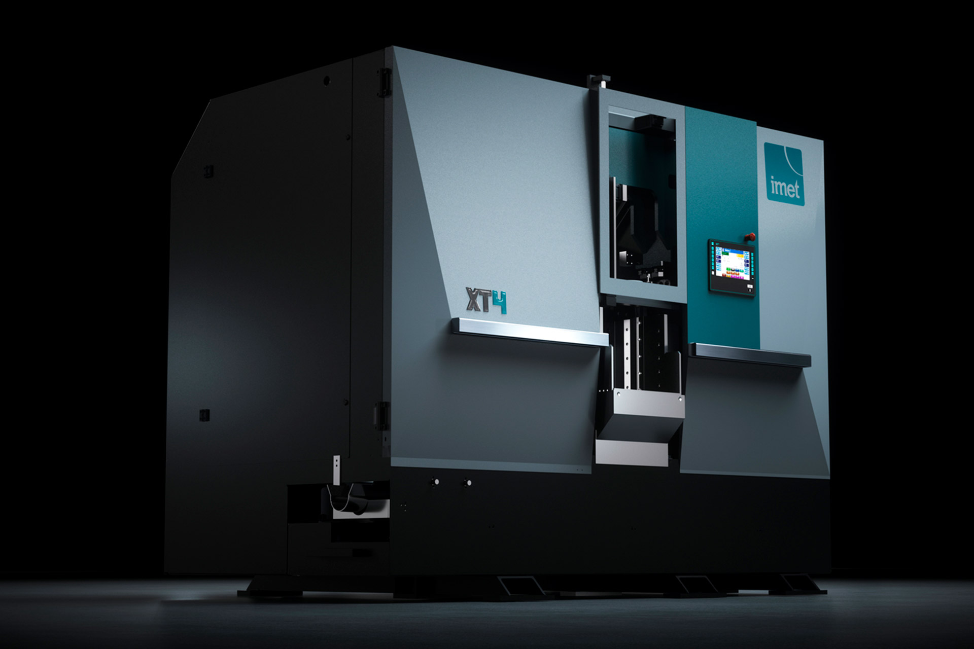 XT4 is born from years of in-depth research which has ultimately lead to the development of a highly compact unit with no compromise on quality. It has been designed with operator safety being of paramount importance, so at first glance it can appear to be a completely inaccessible. However, on closer inspection the operator is able to access all areas very quickly via specially developed opening systems on either side of the machine. Even the colour choices which match the historical IMET palette aren’t just for aesthetic reasons, they are utilised to map the functions of individual elements on the XT4. The white panels indicate the previously mentioned opening system, and the turquoise colour groups the ‘control’ aspects of the machine together with the mobile bow – the two main elements on the mechanical side and the operator side.